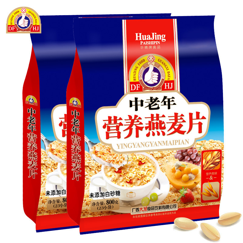HJ Huseyin oatmeal without sugar Wheat Flakes 800g * 2 bags ready-to-eat nutritious breakfast Meal Powder small bagged