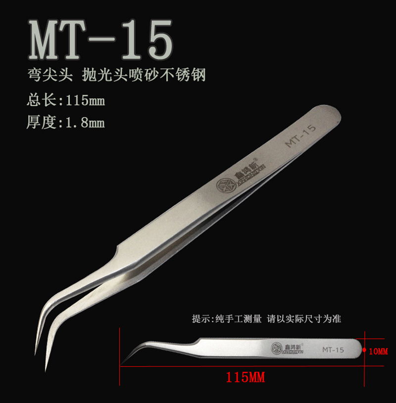 Xinhongxin hard stainless steel tweezers Pointed elbow Precision electronic components welding bird's nest hair pick tool