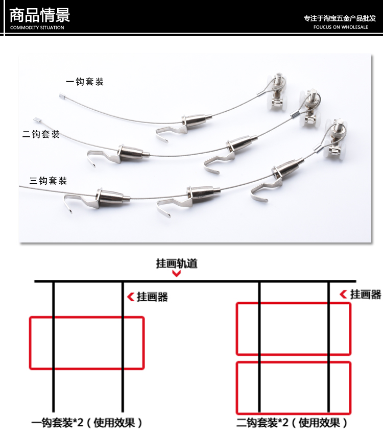 Hanging illustrator Stainless Steel Wire Rope Hanging Painting Hook Exhibition Gallery Hook Hung Painting Rope Hanging Painting Track Hanging Painting Line