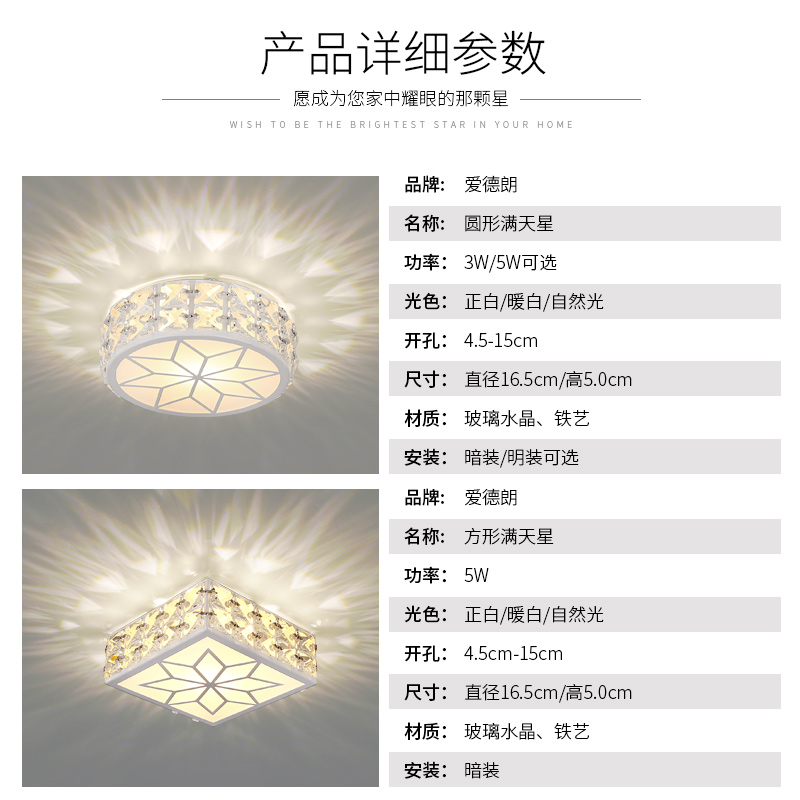 EDRAM LED crystal spot light 3W 5W Embedded light and dark aisle light Silk downlight Ceiling entrance light