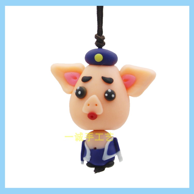 Jinzhou Cargo Source Soft Pottery Mobile Phone Hanging Rope Pure Handmade Pinch Color Pottery Ornament Big pendant Jinzhou Soft pottery factory Tang monk