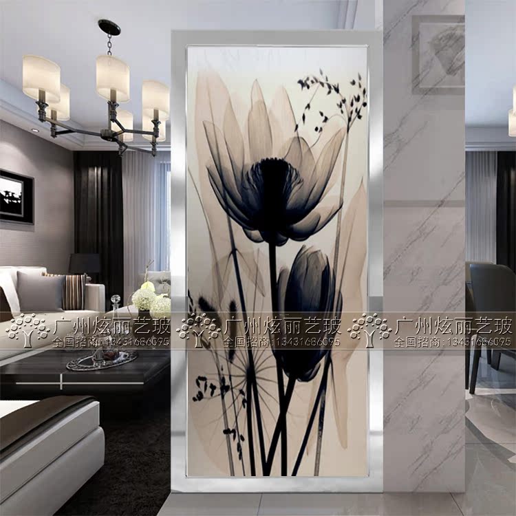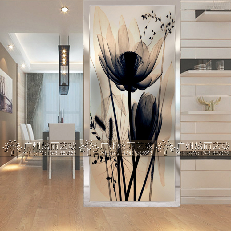 Art glass partition screen modern porch entry background wall engraved sculpture sculpture sculpture scrubbing floor as transparent as flowers