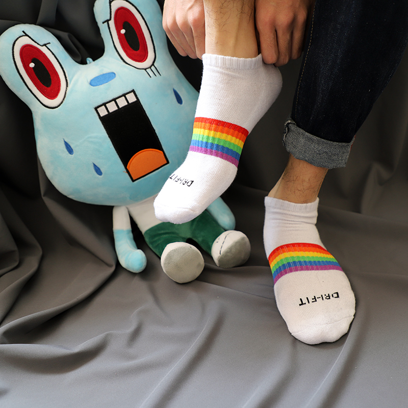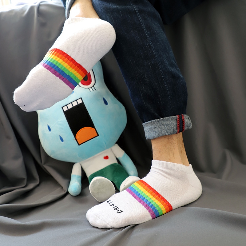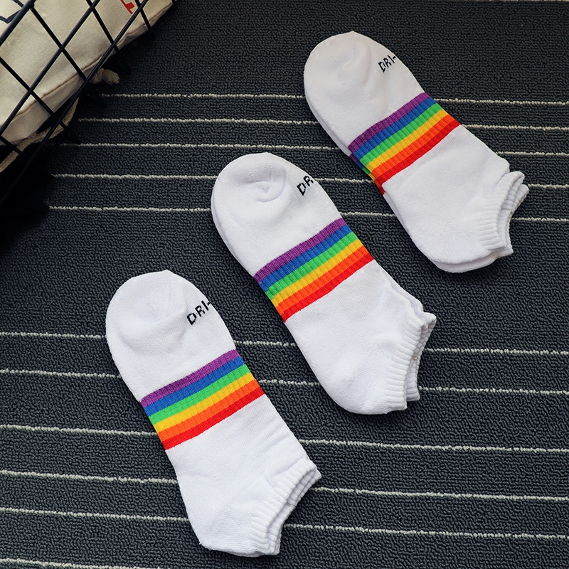 Socks rainbow stripes men's towel bottom sports sexy shallow mouth pure cotton invisible socks Summer white socks thin trendy socks