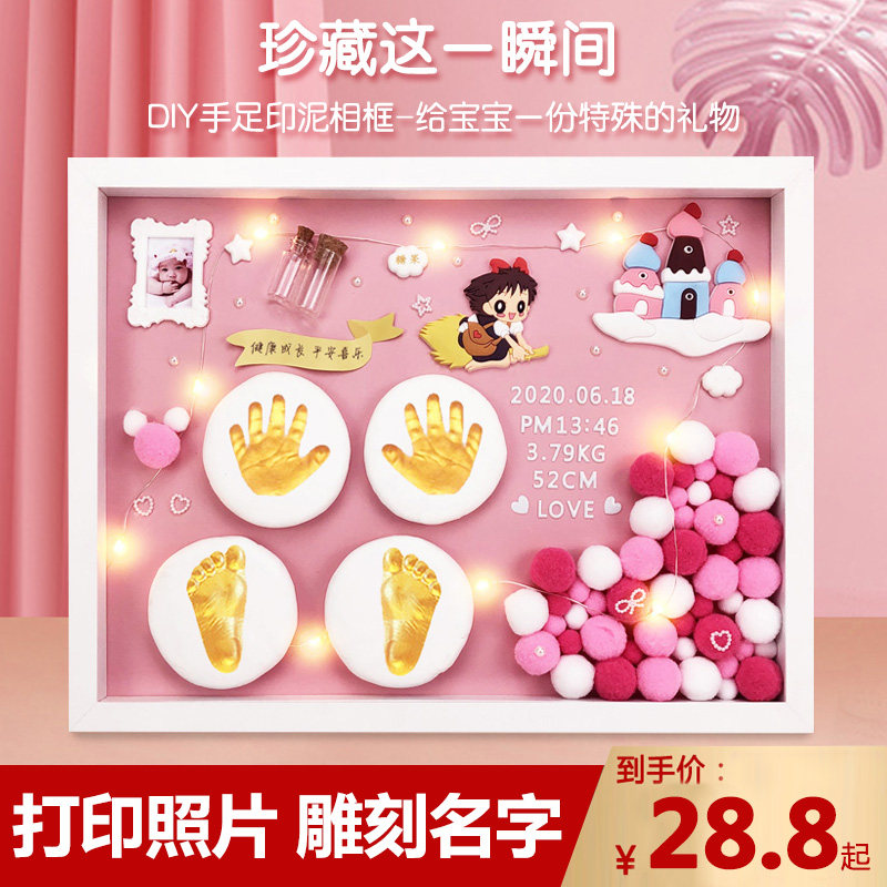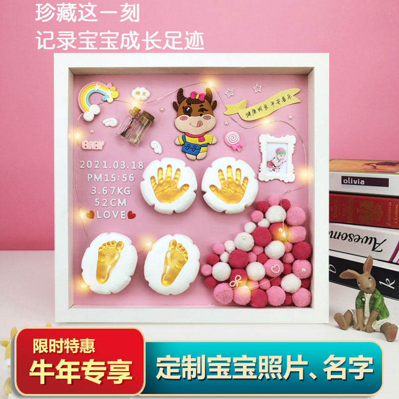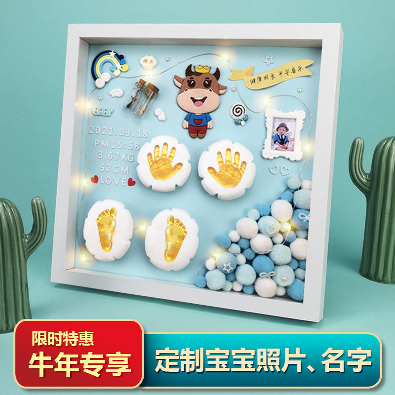 Full Moon Hand and Foot Print Baby Hand and Foot Print Clay Baby First Birthday Fetal Hair Souvenir Making 100 Days Creative Gift Fetal Hair