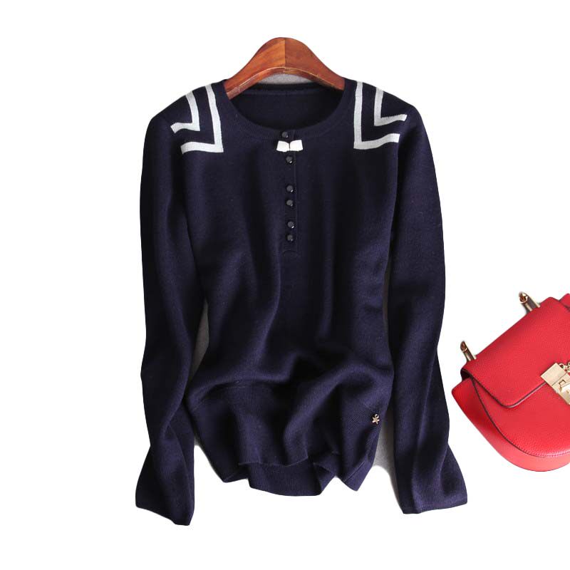 New neckline delicately small butterfly knot geometric pattern rounded collar long sleeve wool cover head-knitted sweater women's autumn