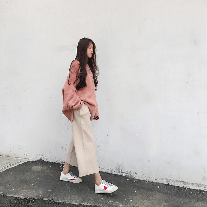 Sakura Pink Sweater Apricot Wide Leg Pants
