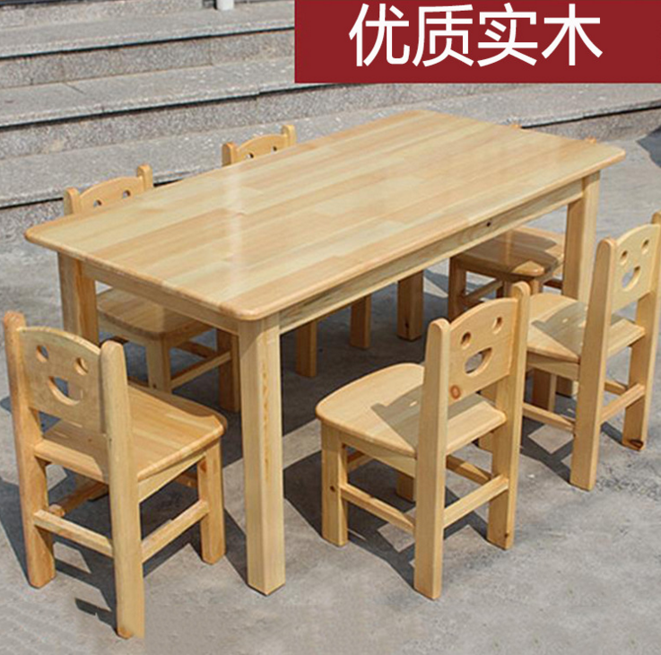 Factory direct supply Kindergarten solid wood tables and chairs Children's table wooden six-person rectangular table school desks and chairs