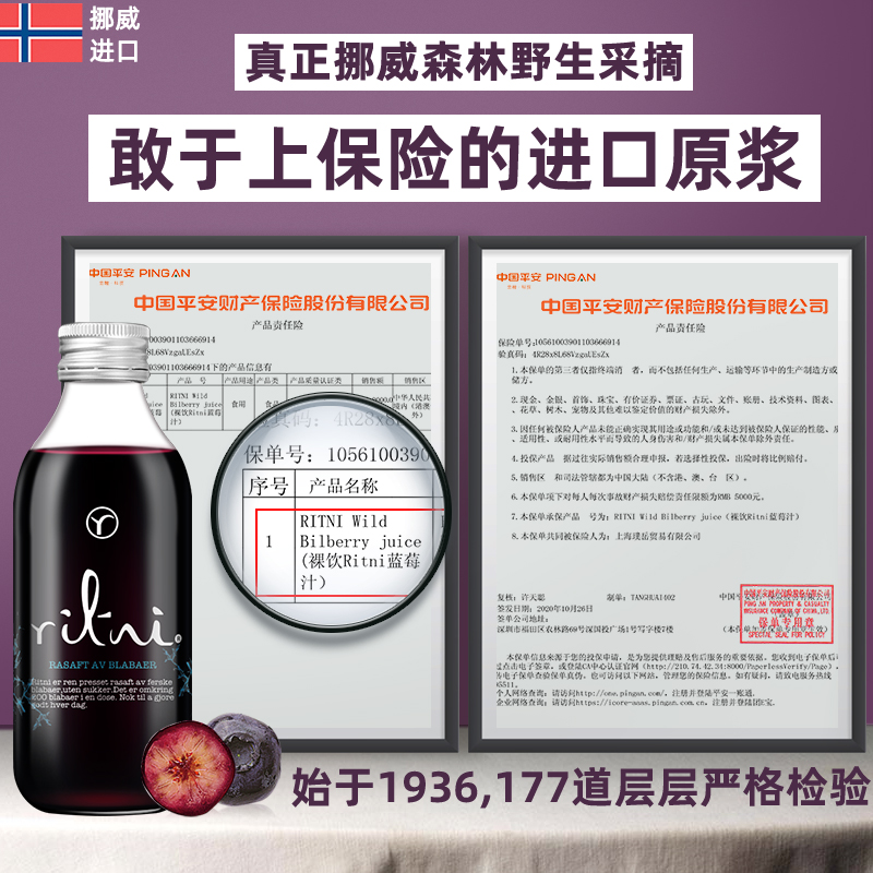 Naked drink Ritni Norwegian blueberry juice nfc juice original imported one bottle of pure wild blueberry puree without addition