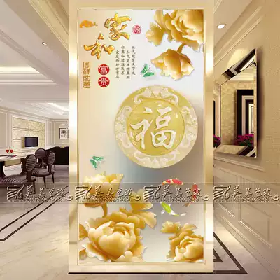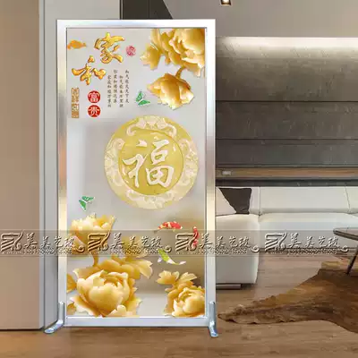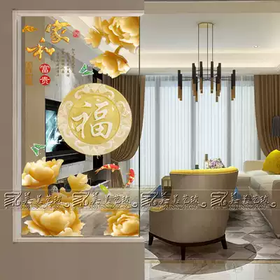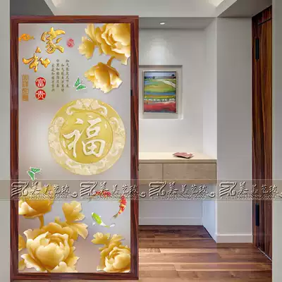New art glass kitchen partition entrance background wall screen sliding door shoe cabinet frosted transparent simple peony flower