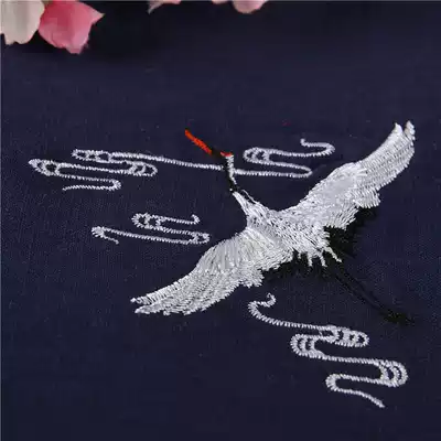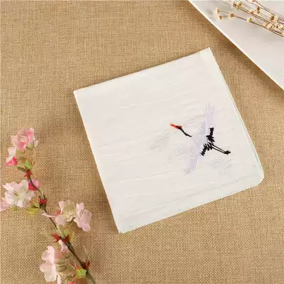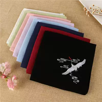 Original pure cotton hemp embroidered handkerchief sweat-absorbing men's embroidered square towel tea towel Ancient style fairy crane embroidered women's handkerchief
