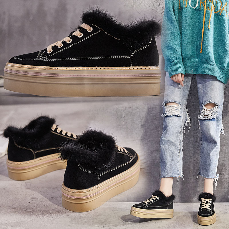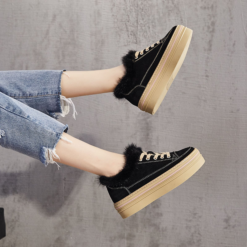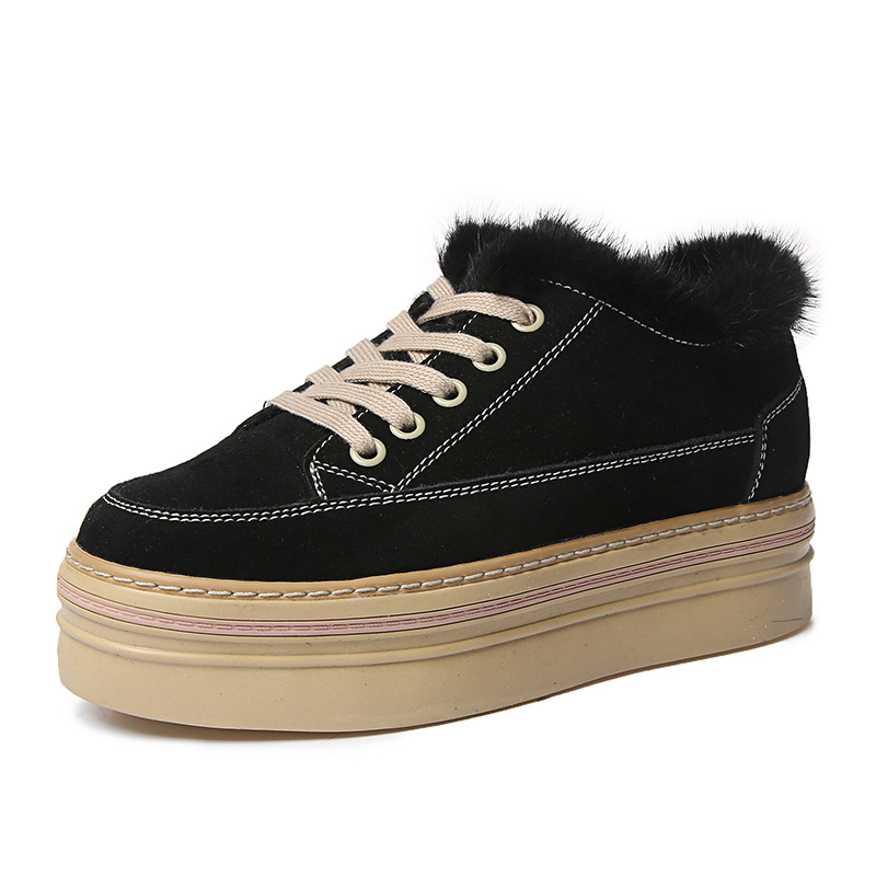 Winter new Han edition Increased female shoes thick soles cake leisure shoes leather plus wool shoes