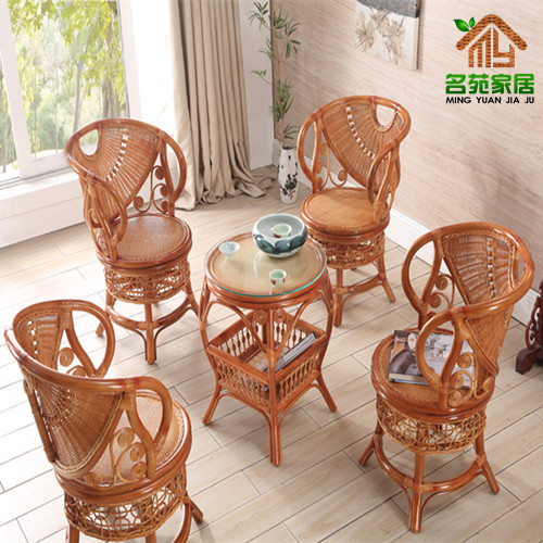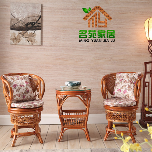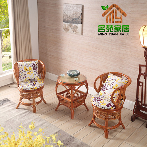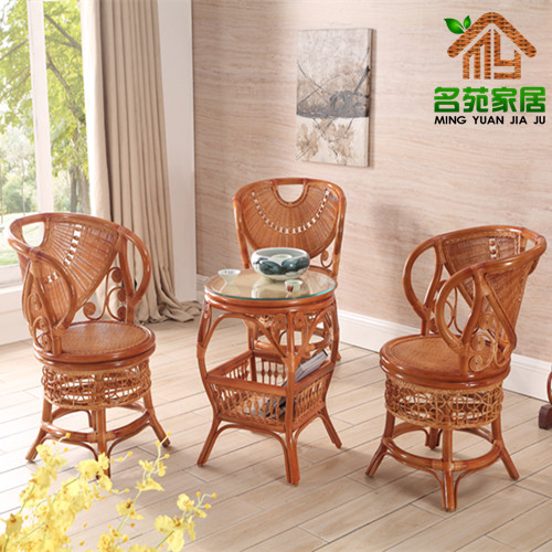 Natural Indonesian plant real rattan rattan chair coffee table three-piece balcony rattan table and chair combination chair swivel chair