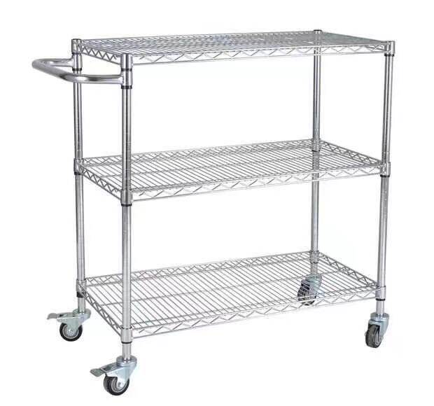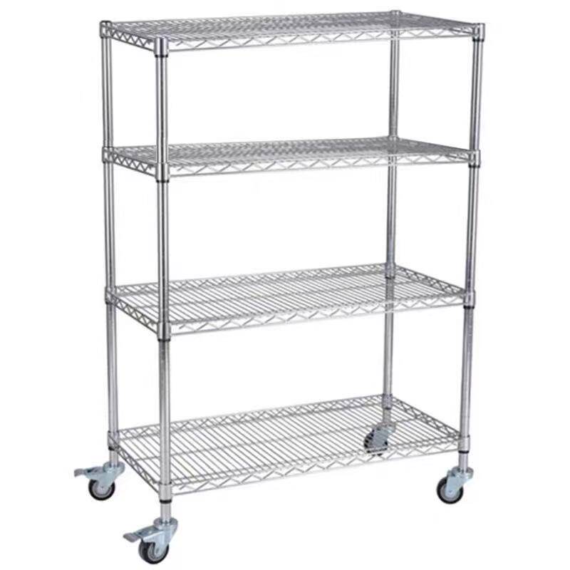 Chrome-plated stainless steel mobile shelving with wheel shelving for home storage Antistatic trolley material rack containing shelf