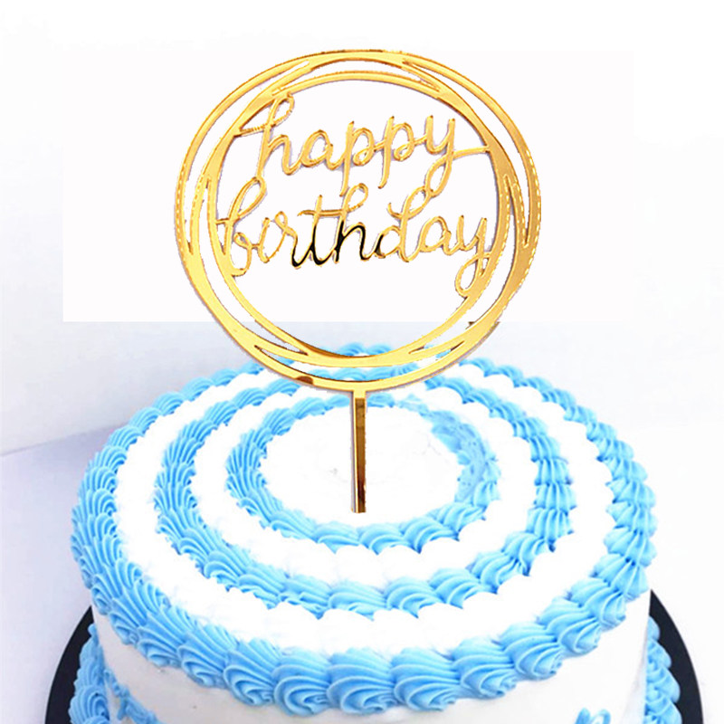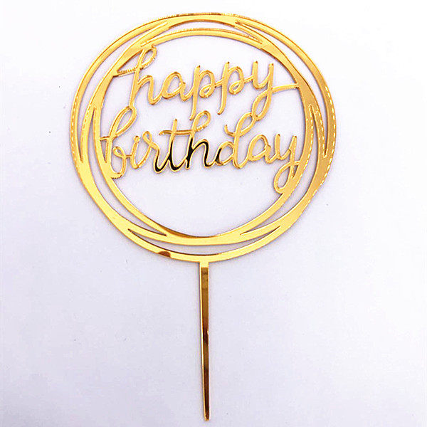 Happy Birthday Inserts ACRYLIC Cake Inserts Baking Accessories Golden Shiny Cake Decoration