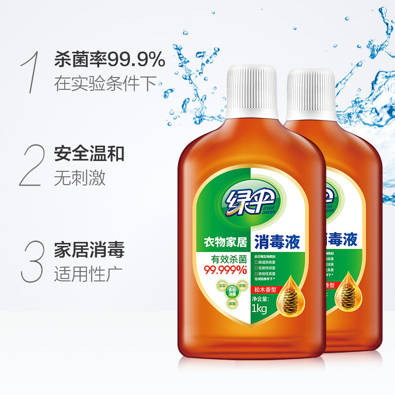 Green umbrella household clothing disinfectant pine incense type 1kg * 2 bottles of sterilization and odor fragrance disinfectant water safety