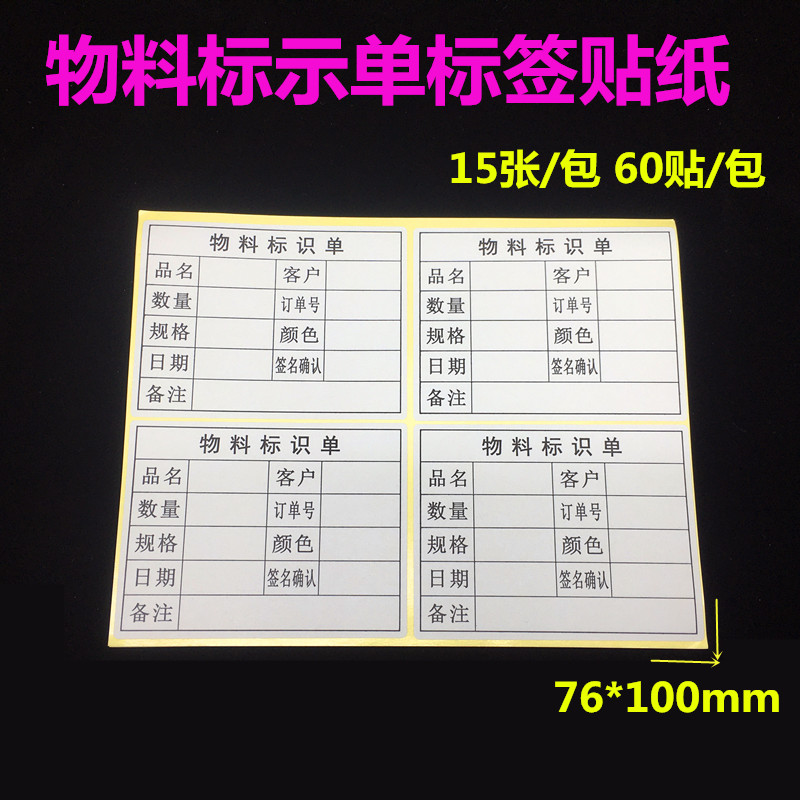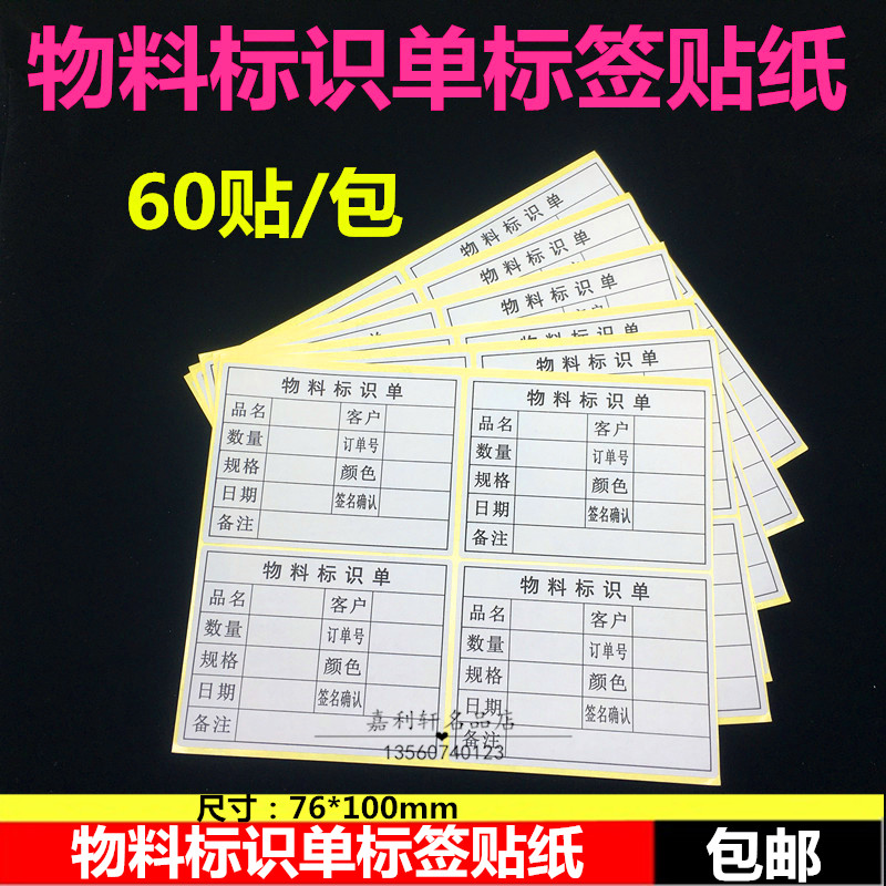 Material ID Single stickers Adhesive Labels Mark Card Goods Label Boxed Up 76 * 100mm 60 Sticker Packs
