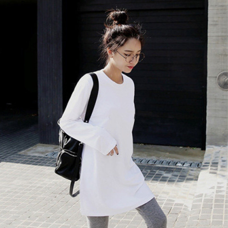 Spring and autumn blouses women's 2021 new women's version Korean version round collar in long version of pure cotton long sleeve T-shirt women's bottom shirt 100 hitch