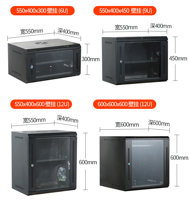 Common 2U wall-mounted 530 * 150 * 350 common 4U wall-mounted 530 * 350 * 220 common 6U530 * 350 * 300 common 9U530 * 400