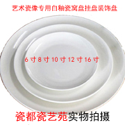 Various sizes positive round medium white glazed flat porcelain tray made porcelain disk porcelain like painting figure flower bird scenery with porcelain tray