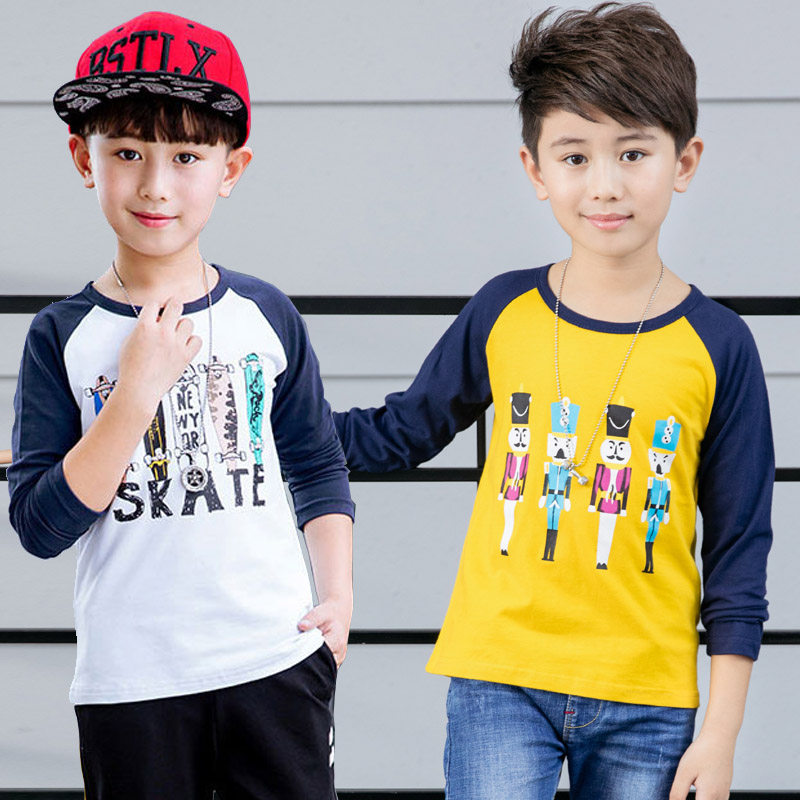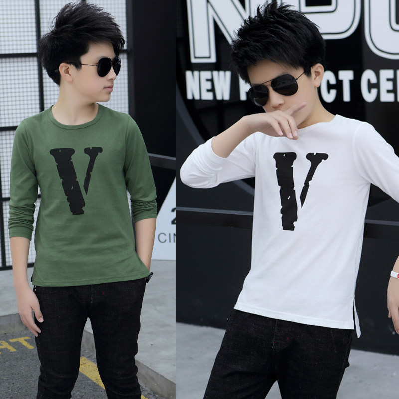 2022 new boys' long-sleeved T-shirt black bottoming shirt children's white top children's big children's spring and autumn T-shirt 9