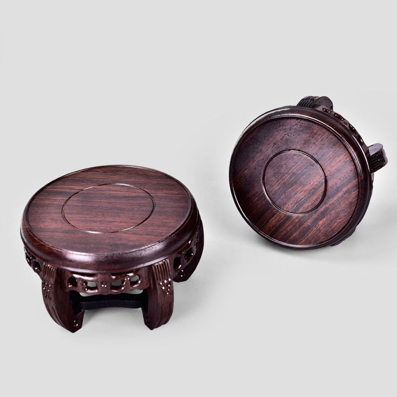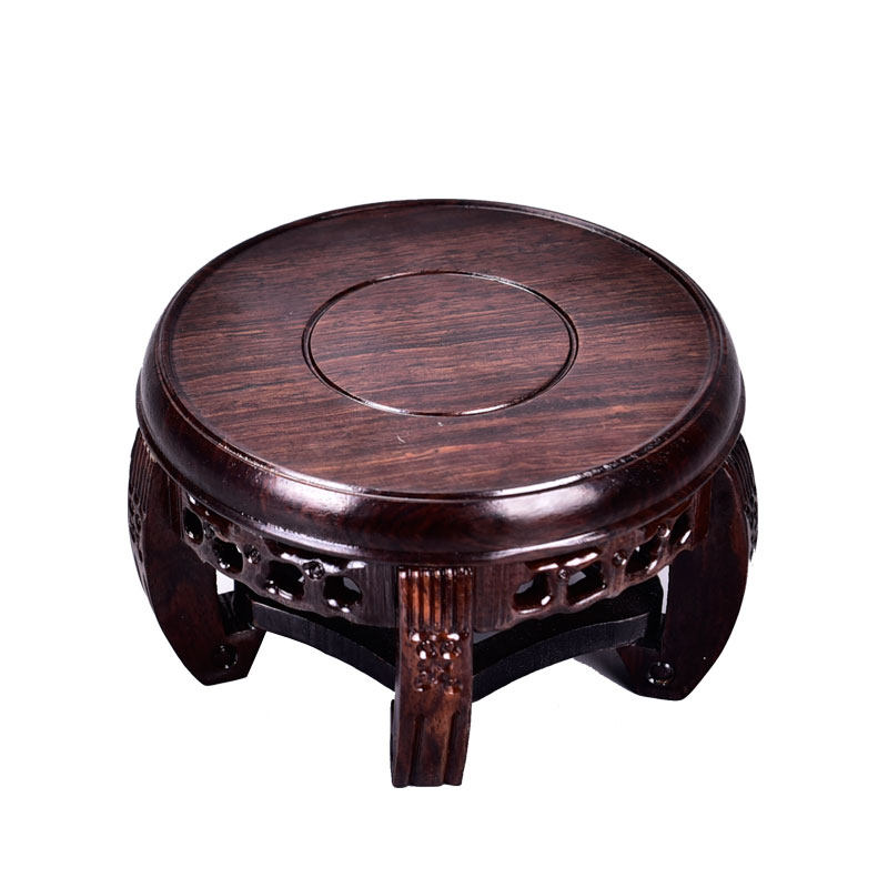 Ebony solid wood flower pot round base Buddha statue vase fish tank strange stone handicraft wood carving decoration carving bracket