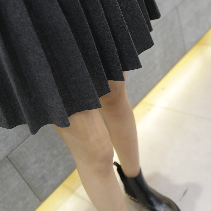 Hairy, pleated skirt schoolgirl with high waist A character elastic short skirt external wearing underskirt autumn winter Korean version black half-body dress
