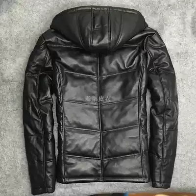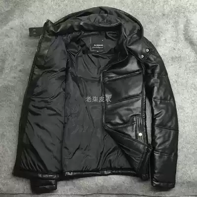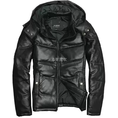 Winter locomotive new fashion detachable hat leather leather jacket down jacket male slim leather jacket sheep thick tide