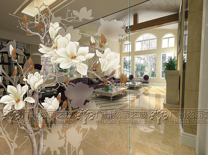Art glass screen partition door Background wall shoe cabinet engraved sand transparent - jalan screen