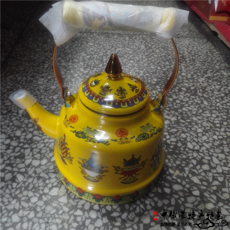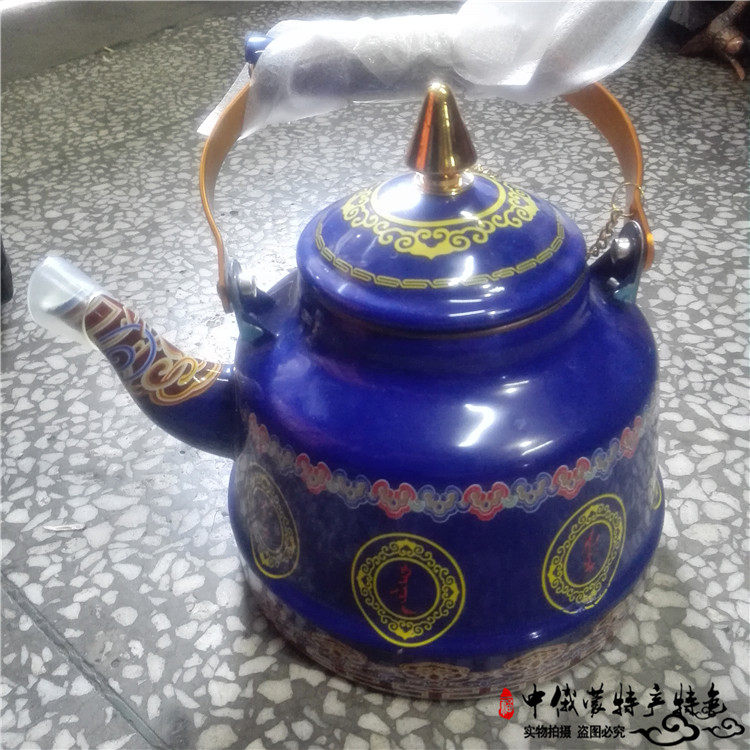 Mongolian specialty tableware enamel pot Mongolian meal milk teapot Mengwen ghee teapot ethnic style Mongolian restaurant dedicated