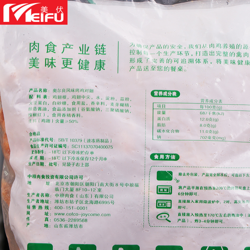 COFCO Orleans grilled wings semi-finished frozen wing root wings 11 pairs of milk tea burger raw microwave grilled wings