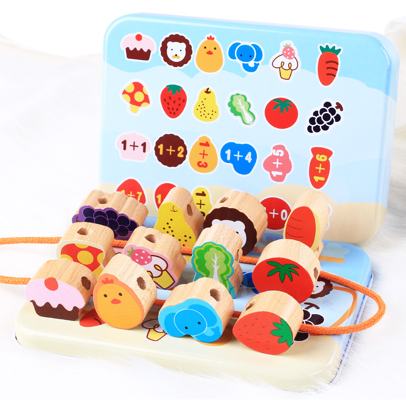 Children wearing beads educational toys 01-2-3 years old early education enlightenment beaded toys baby threading building blocks