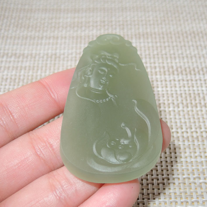 Dialect and Tian Jade Preferential only RMB480 wearing class Qinghai Qingbai jade Lotus Guanyin pendant brand pendant h