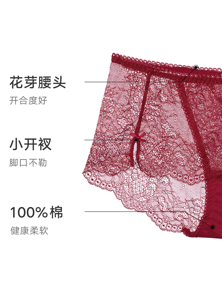 Maniform Sexy Lace Mid-Low Waist Low-angle Pants Comfortable Women's Underwear with Fashion Red Benming Underpants