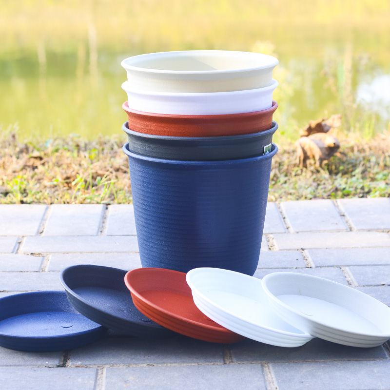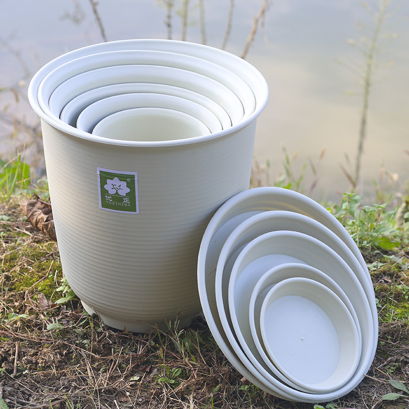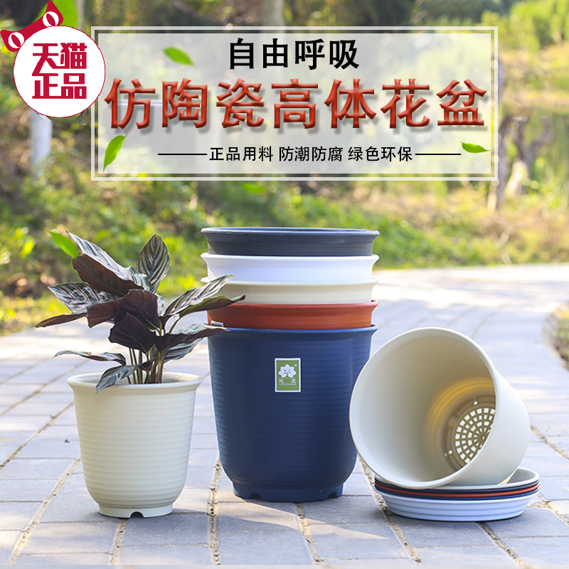 Thickened long body plastic flower pot high body round flower pot indoor balcony imitation ceramic high flower pot large flower pot Nordic