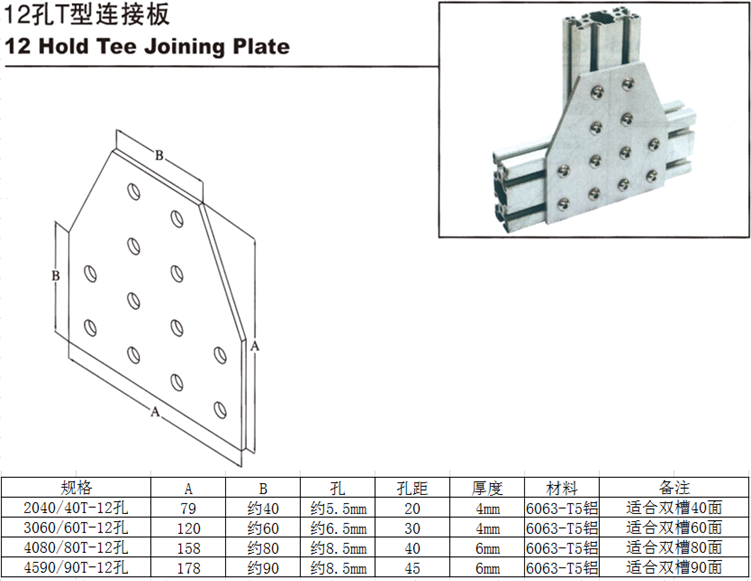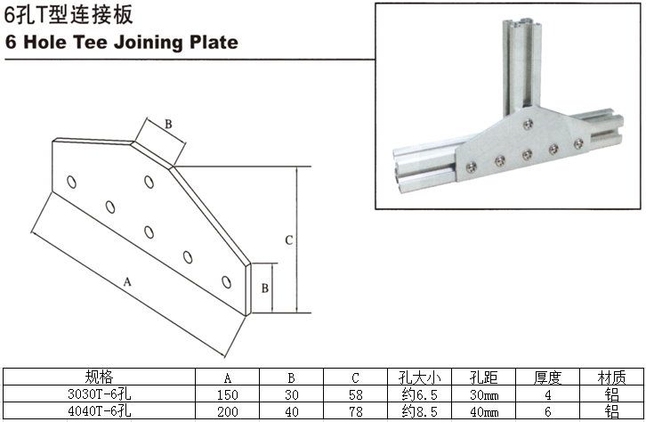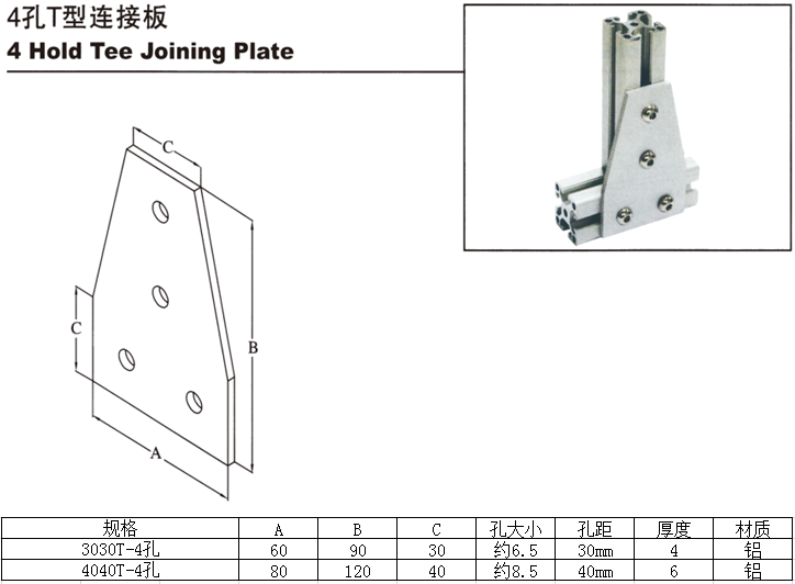 Aluminum T - type connecting plate 3030 4040 3060 408060608 profile reinforced connector panel