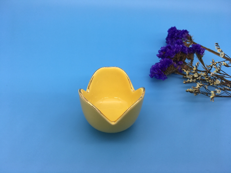Utensil performance Japanese creative ceramics side dish cup delicacy cup flower cup yellow with gold rim sauce dish flavor dish