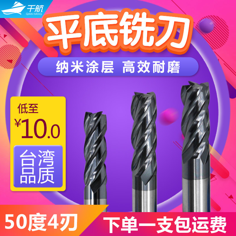 Qianhang 50 degree tungsten steel milling cutter 4-blade carbide milling cutter CNC numerical control cutter alloy coating end mill flat cutter