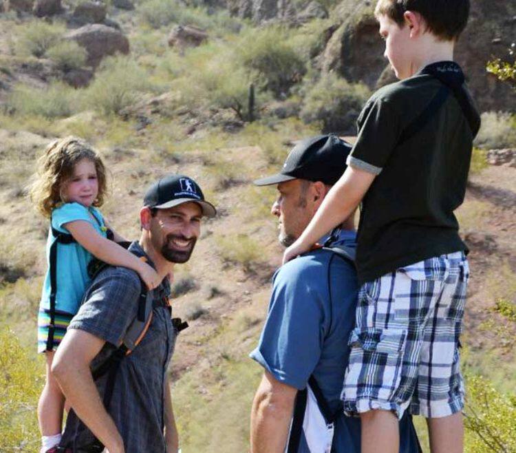 Piggyback Rider children stand upright and hold baby bag