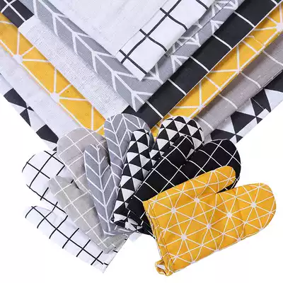 White grid pattern apron gray bottom fishbone pattern apron gray grid pattern apron black and white triangle pattern apron black grid pattern apron yellow grid pattern apron white grid pattern gloves (single)