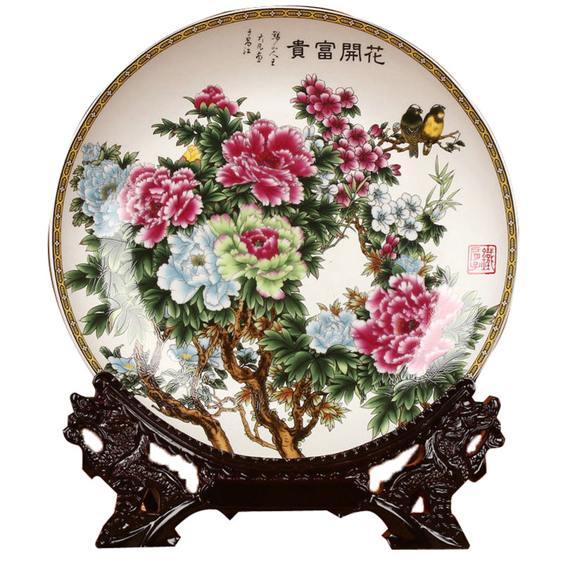 Decorations on the Banderas Jingdezhen Ceramic TV cabinet Decorative Pendulum porcelain tray Dining Room Flowers open rich and expensive hanging tray