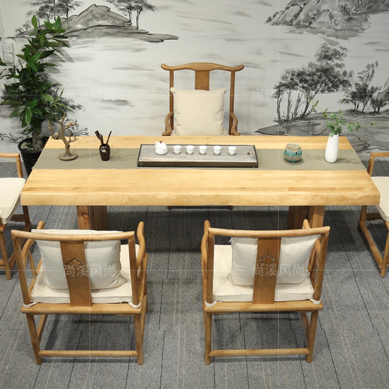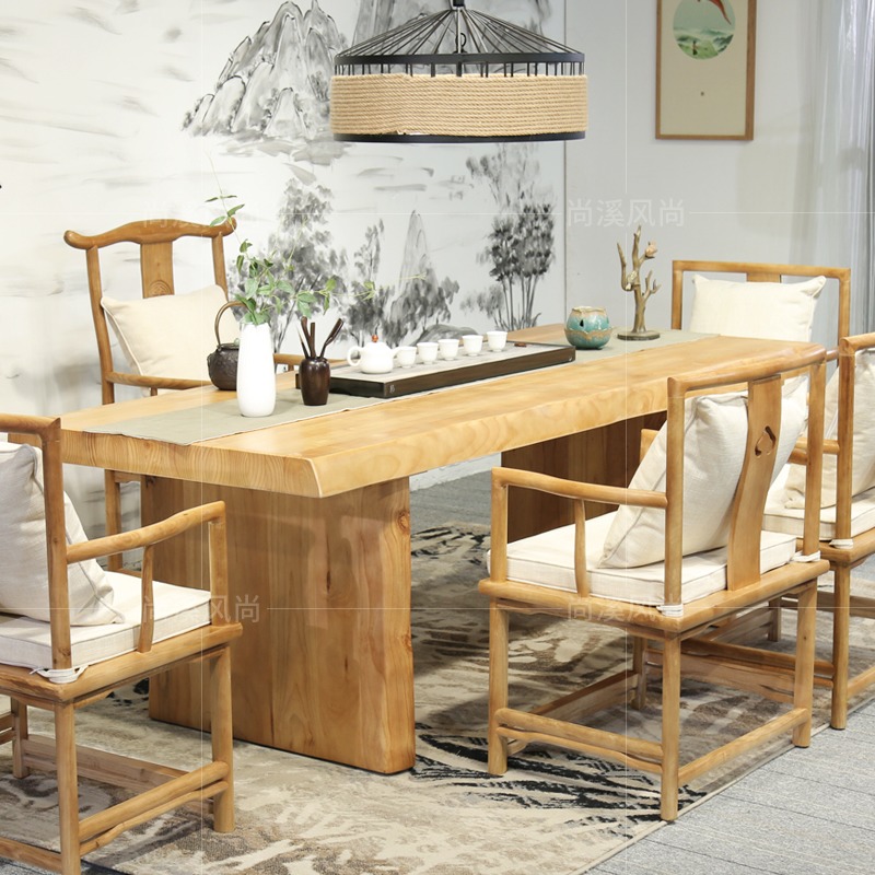 New Chinese Solid Wood Large Ball Desk Simple Office Room Table Building Tea Table Tea Table Desktop Log Plate Table