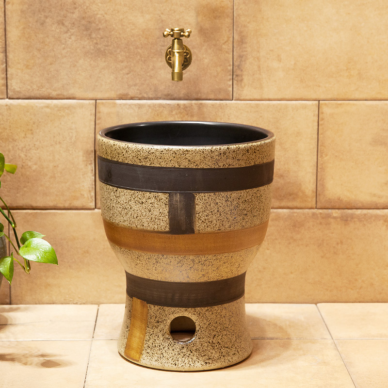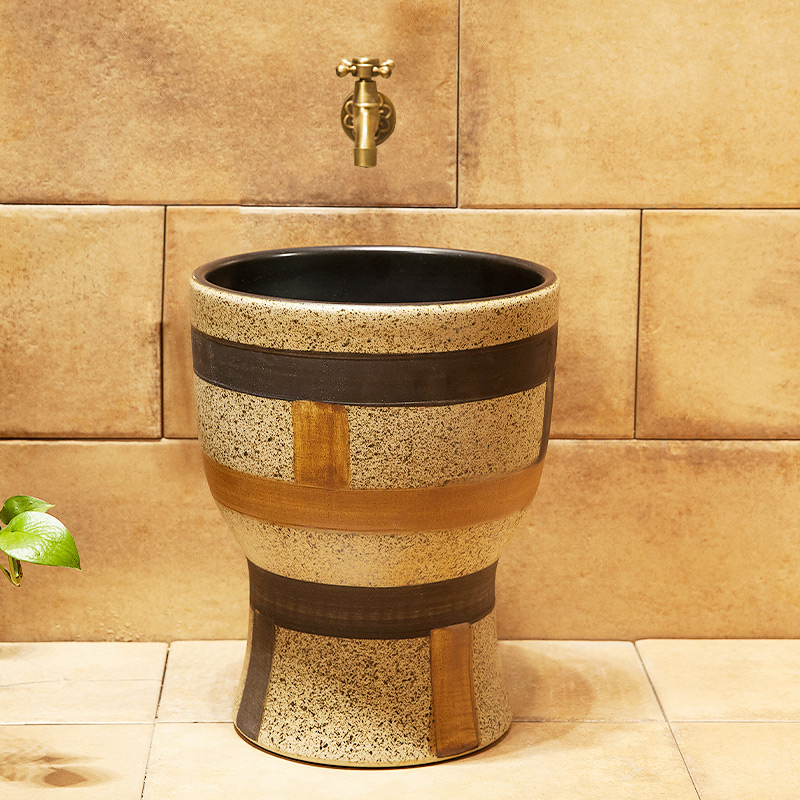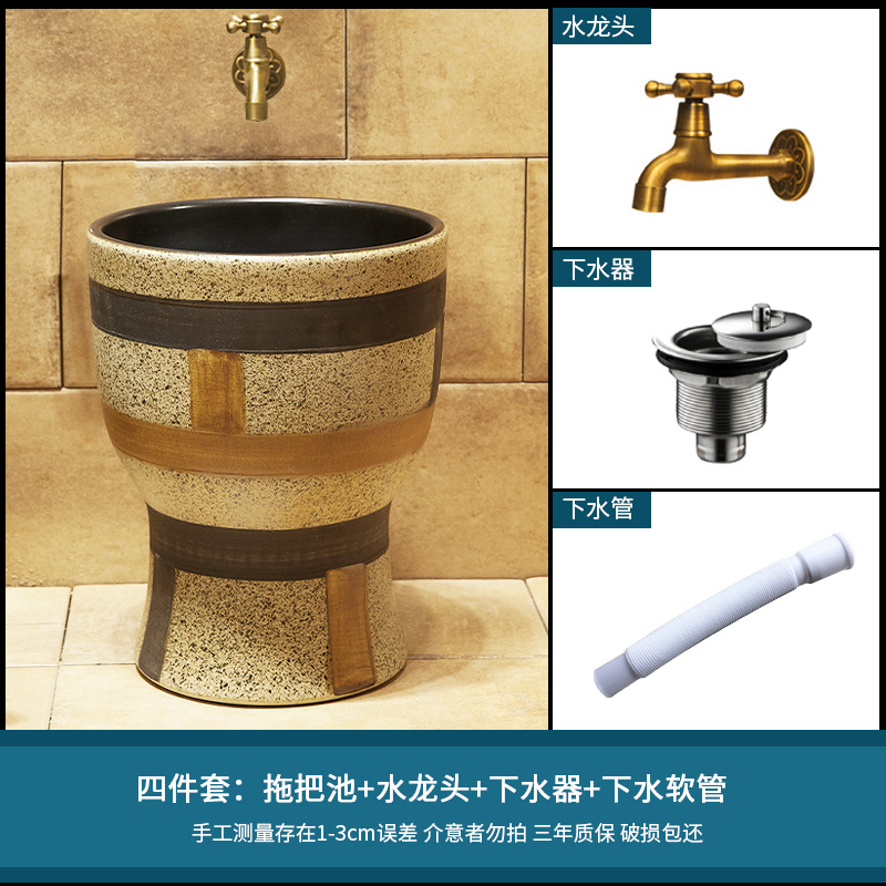 Ceramic mop pool art mop basin balcony mop pool round mouth one-piece mop pool large diameter 30cm black segment