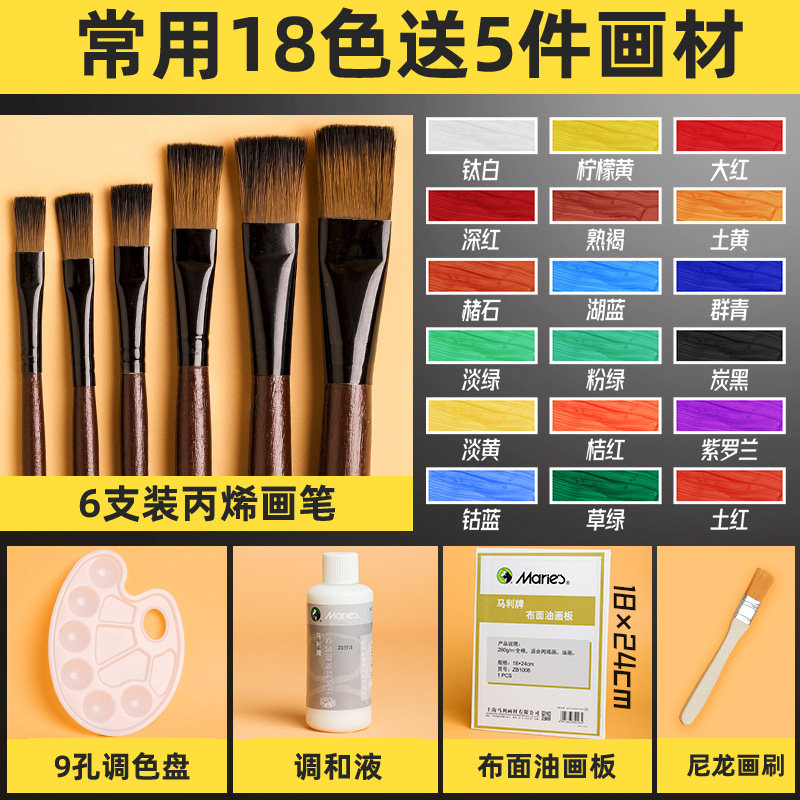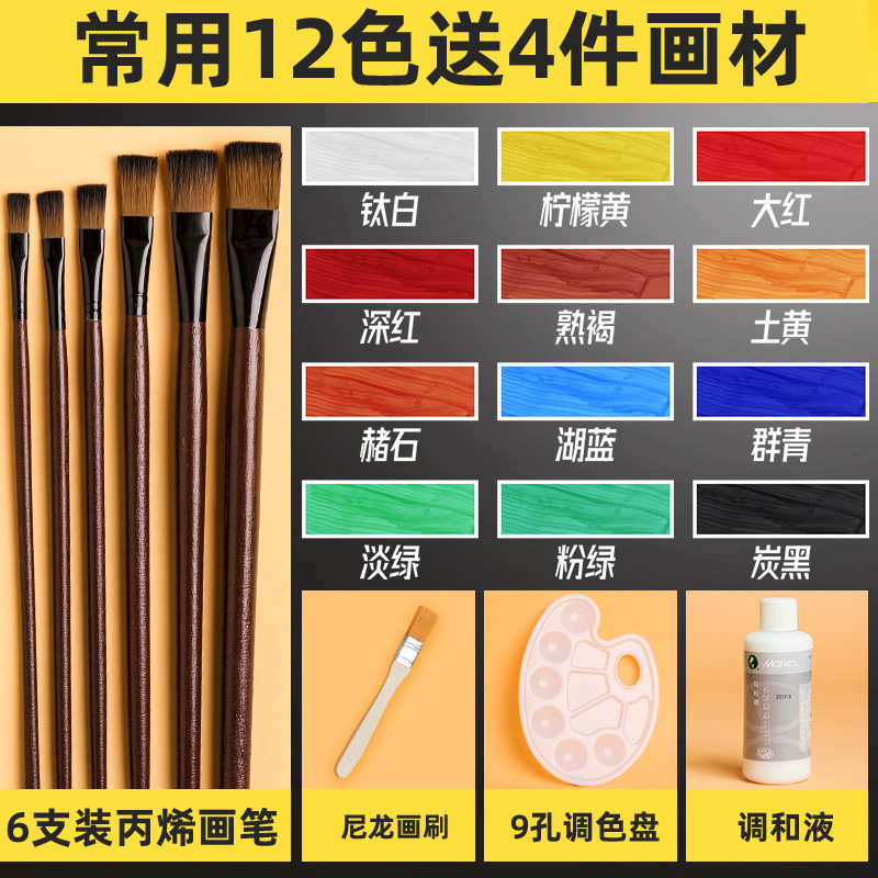 Titanium white Lemon yellow Light yellow Flesh Medium yellow Orange yellow red orange red crimson vermilion rose red purple Ultramarine Pu blue Sky blue phthalocyanine blue Cobalt blue Lake blue Medium green