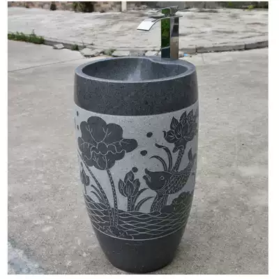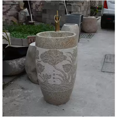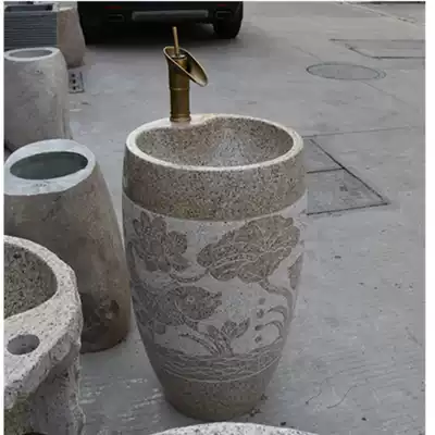Stone sink integrated stone column basin art imitation retro balcony Outdoor courtyard sink pool