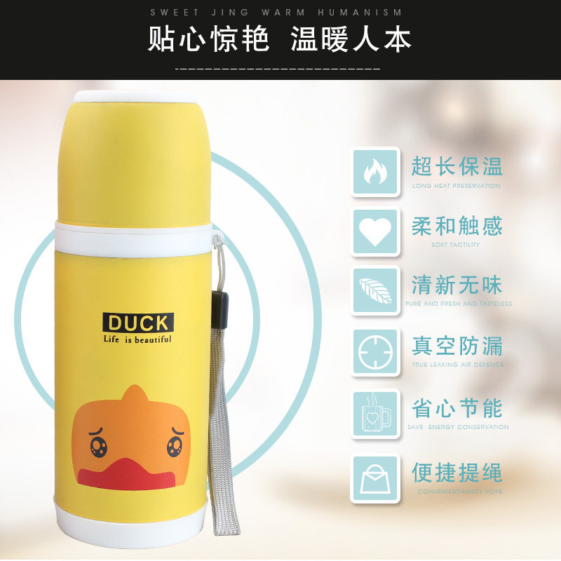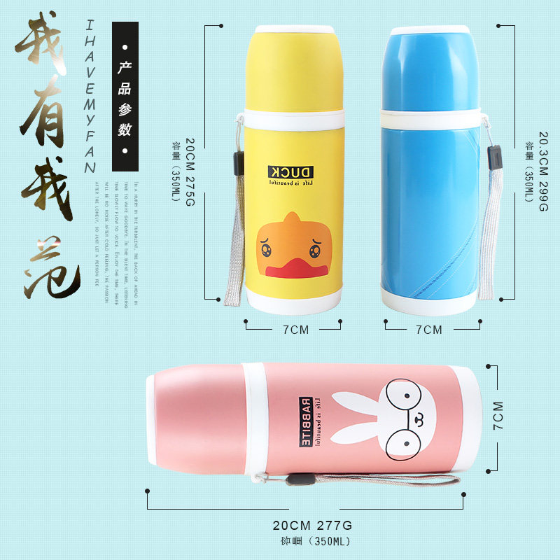 Stainless steel thermos cup cute children's cartoon vacuum bullet sling cup custom gift engraved word logo