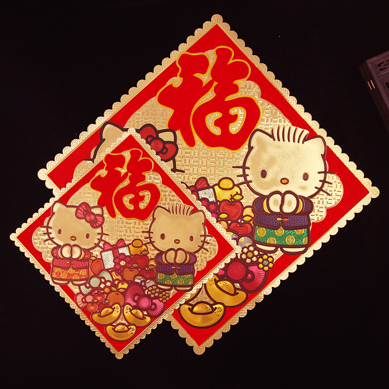 Spring Festival stickers decorative supplies cute hello Kitty cat gold foil cartoon spring couplet stickers