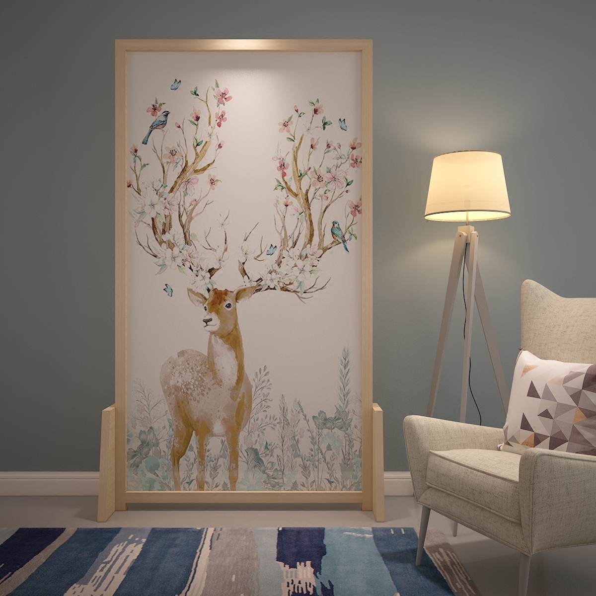 Nordic Solid Wood Screen Seat Screen Partition Hyun Guan Fashion Living Room Bedroom Base Screen Office Semi-Overdraft Screen Custom