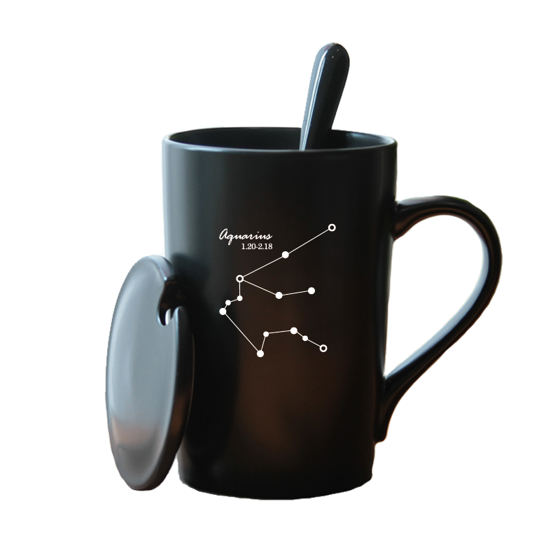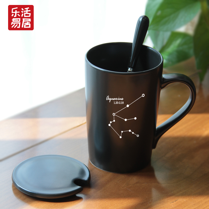 Sub-black water bottle 420ml porcelain cover black spoon sub-black double fish 420ml porcelain cover black spoon subblack Libra 420ml porcelain cover black spoon sub black and white sheep 420ml porcelain cover black spoon