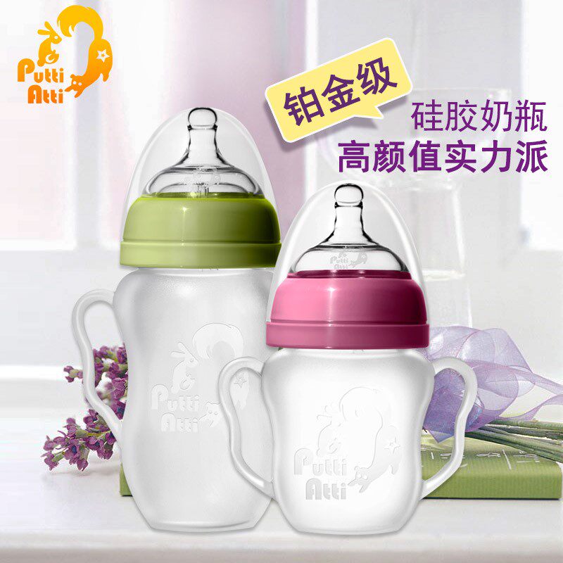 Handle green 160ml with 1 stage nipple 0-3M with handle pink 160ml with 1 stage pacifier 0-3M with handle green 260ml with 2 stage nipple 3-6M with handle