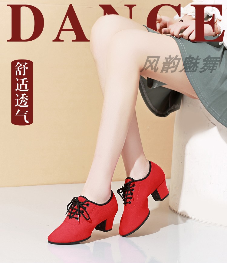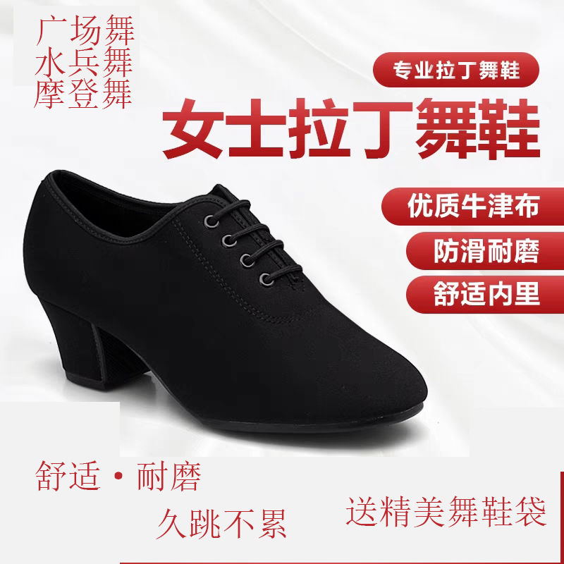 Charm Dance Latin Dance Shoes Medium Heel Soft Sole Oxford Cloth Dance Shoes Square Trading Modern Dance Shoes Comfortable Professional